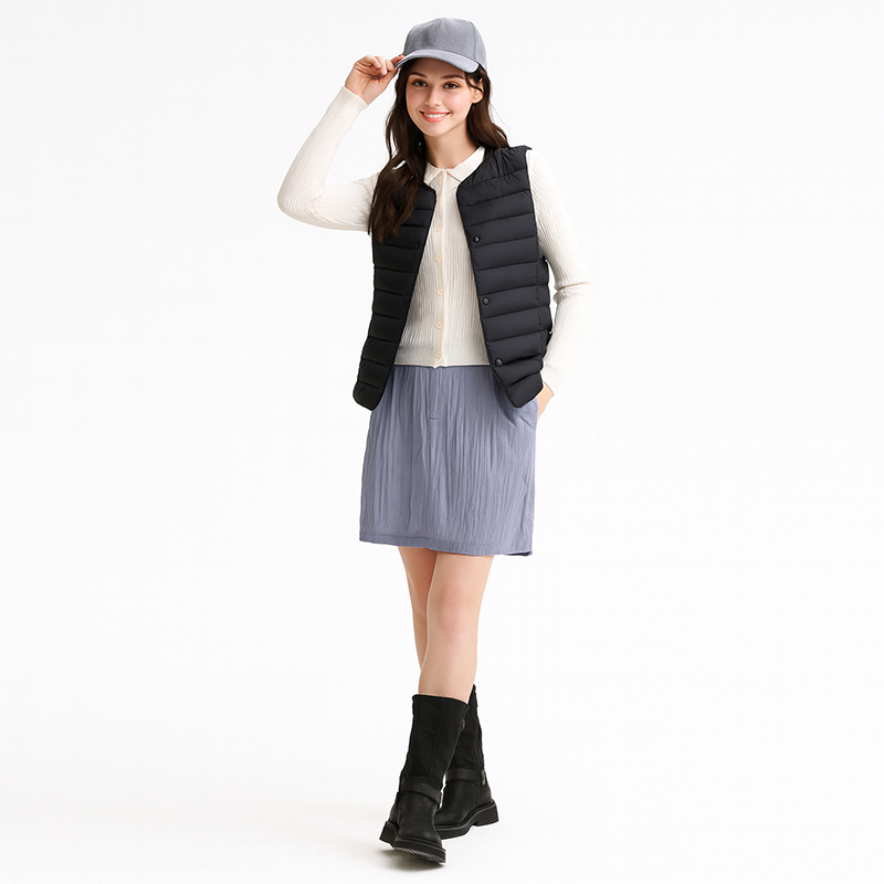 叠穿是排骨羽绒服的隐藏技能,“三明治穿法” 保暖又显瘦。配饰无需复杂,一顶帽、一条金属项链就能点亮造型,避免全身上下过于单调。
