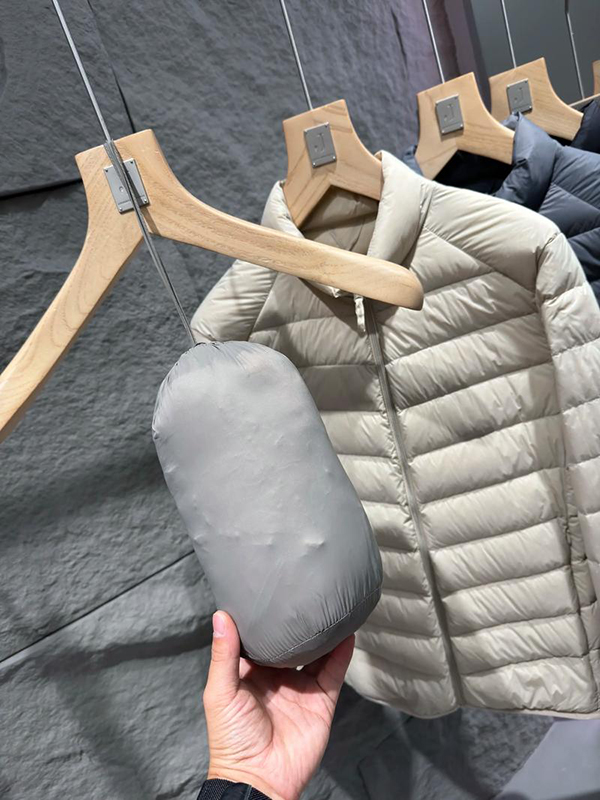 3D 立体骨条锁绒工艺,每条骨条仅锁 0.9g 羽绒,却能将蓬松度拉到 800+,高端款甚至达到 1000 蓬,相当于把云朵的保暖力压缩进轻薄面料里。揣进收纳袋只有拳头大小,出差旅行毫无负担。