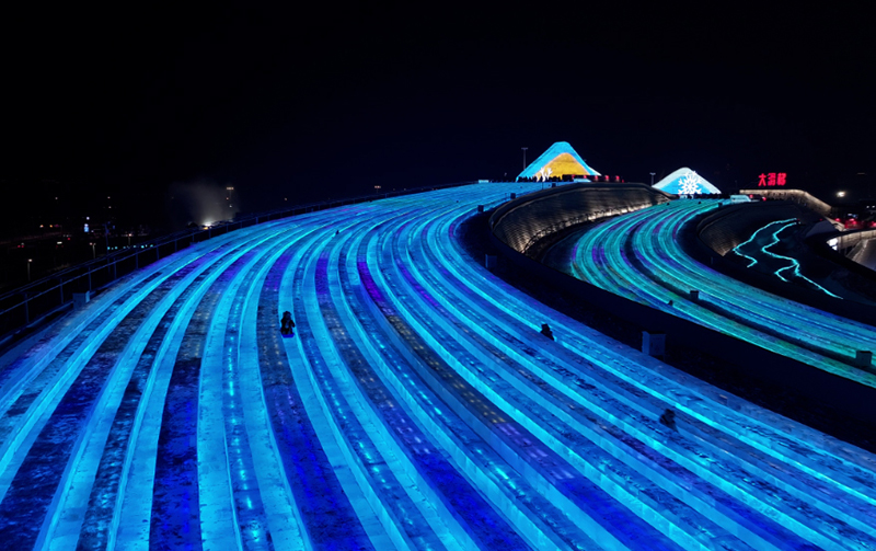 500 米长的超级冰滑梯成了必打卡项目,即便屁股凉透仍直呼 “过瘾”,排队两小时也心甘情愿。